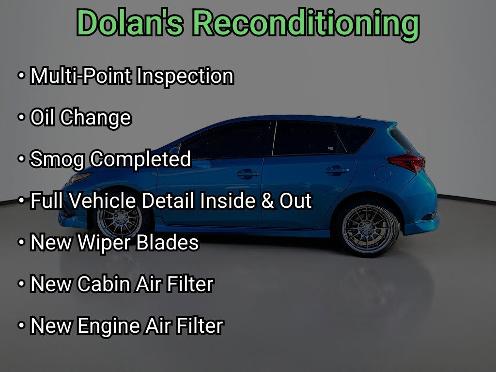 Multi-Point Inspection, w/ Oil Change, Smog Completed, & Full Vehicle Detail Insided & Out, Wiper Blades are New all Around, Cabin Air Filter is New, Engine Air Filter is New, 17" x 7" Alloy Wheels, 4-Wheel Disc Brakes, 6 Speakers, ABS brakes, Air Conditioning, Alloy wheels, AM/FM radio, Auto High-beam Headlights, Automatic temperature control, Brake assist, Bumpers: body-color, Delay-off headlights, Driver door bin, Driver vanity mirror, Dual front impact airbags, Dual front side impact airbags, Electronic Stability Control, Exterior Parking Camera Rear, Fabric Upholstery, Four wheel independent suspension, Front anti-roll bar, Front Bucket Seats, Front Center Armrest w/Storage, Front dual zone A/C, Front reading lights, Fully automatic headlights, Heated door mirrors, Illuminated entry, Knee airbag, Leather Shift Knob, Leather steering wheel, Low tire pressure warning, Occupant sensing airbag, Outside temperature display, Overhead airbag, Overhead console, Panic alarm, Passenger door bin, Passenger vanity mirror, Power door mirrors, Power steering, Power windows, Radio data system, Radio: 7" Toyota iM Display Audio, Rear anti-roll bar, Rear seat center armrest, Rear window defroster, Rear window wiper, Remote keyless entry, Speed control, Speed-sensing steering, Split folding rear seat, Spoiler, Steering wheel mounted audio controls, Tachometer, Telescoping steering wheel, Tilt steering wheel, Traction control, Trip computer, Turn signal indicator mirrors, Variably intermittent wipers.